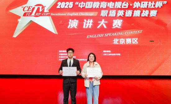 近日,2025“中国教育电视台·外研社杯”职场英语挑战赛演讲与写作大赛(北京赛区)圆满落幕。k1体育职业学院首次选派4名学生参赛,在演讲与写作两个赛项中均表现优异,共摘得二等奖2项、三等奖2项,充分展现了学院学子良好的英语语言应用能力、出色的职业素养与昂扬的精神风貌。